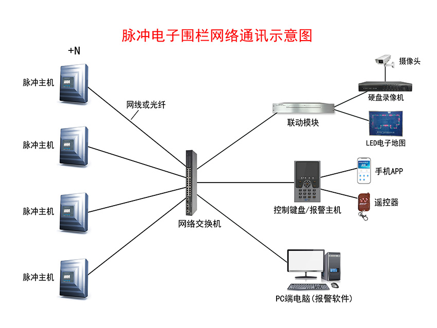 脈沖(chōng)電子圍欄報(bào)警系統示意圖——網絡通訊