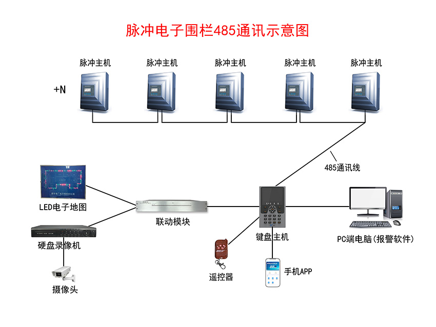 脈沖(chōng)電子圍欄報(bào)警系統示意圖——485通訊
